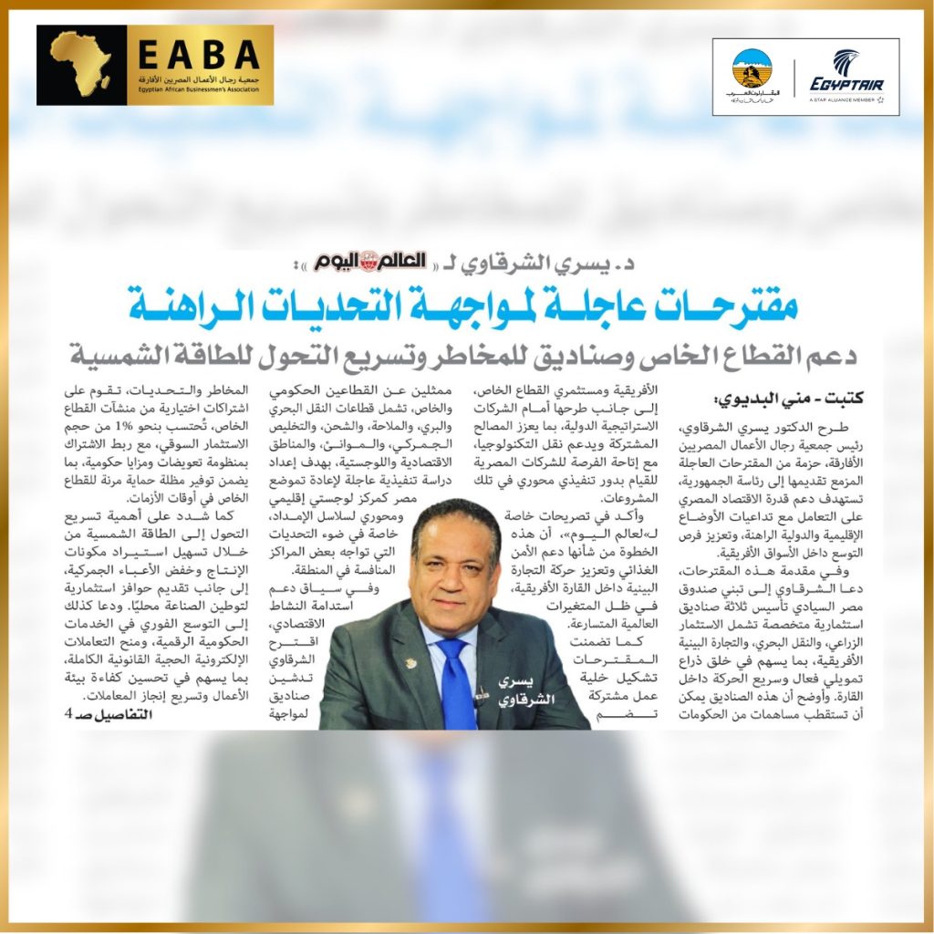 طرح الدكتور يسري الشرقاوي، رئيس جمعية رجال الأعمال المصريين الأفارقة، مجموعة من المقترحات العاجلة لمواجهة التحديات الاقتصادية الراهنة، مؤكدًا أهمية دعم القطاع الخاص وتوفير أدوات تمويل وحماية تساعده على الاستمرار في ظل المتغيرات العالمية.