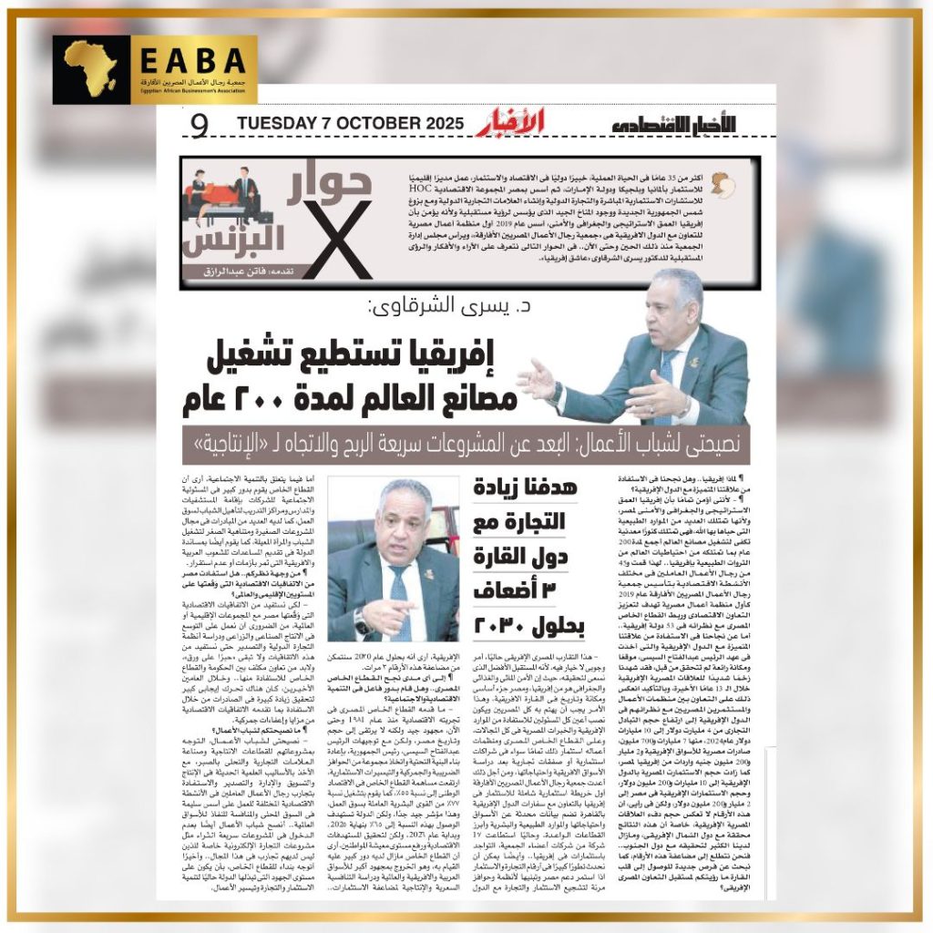 يسرنا الإعلان عن انضمام الدكتور يسري الشرقاوي، رئيس جمعية رجال الأعمال المصريين الأفارقة، كمتحدث في النسخة الثالثة من مؤتمر الزراعة والغذاء، تحت عنوان: “الطريق إلى المستقبل.. تنمية مستدامة وصادرات تنافسية” المكان: فندق ماريوت – القاهرة التاريخ: 13 أكتوبر 2025 يُعد الدكتور الشرقاوي من أبرز الأصوات الاقتصادية في مصر وإفريقيا، وستتناول كلمته فرص تنمية القطاع الزراعي […]