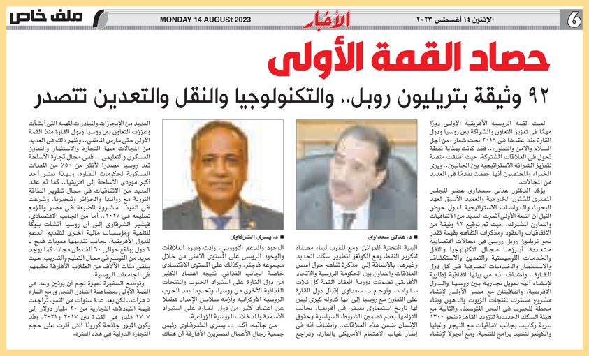 حصاد القمة الأولى 92 وثيقة بتريليون روبل .. والتكنولوجيا والنقل والتعدين تتصدر
