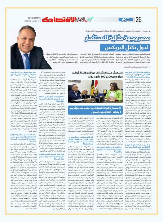 د. يسرى الشرقاوي رئيس جمعية رجال الأعمال المصريين الأفارقة مصر وجهة مثالية للاستثمار لدول تكتل البريكس