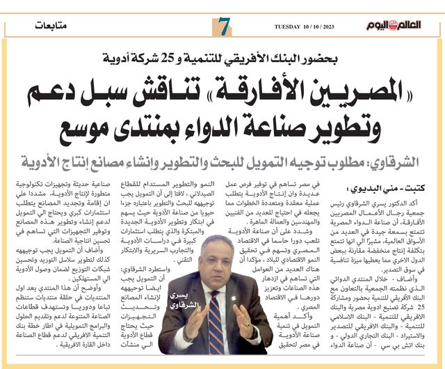المصريين الأفارقة تناقش سبل دعم وتطوير صناعة الدواء بمنتدى موسع